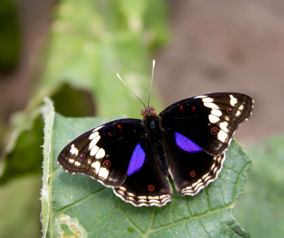 Few butterflies rival the Blue Pansy for pure brilliance. Its upper wings flash with iridescent blue and violet, while the underside mimics dry leaves — beauty and camouflage combined in one design.